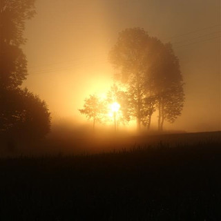 A Wołek na mnie czekał i nie zawiódł. Nad polami delikatnie i nisko snuły się mgły. W dali zobaczyłam klasztor na Bielanach. Niebo się różowiło a ja szłam powoli, przystawałam i czekałam na ten wschód słońca - no przecież w końcu nadejdzie. I nadszedł - i było cudnie. Postanowiłam wracać i odwróciłam się. Po kilku krokach jednak spojrzałam ponownie za siebie i oniemiałam. Wszystko, cała okolica rozpłynęła się w gorejącej czerwieni. Poczułam się zupełnie nierealnie. Teraz jakby tego było mało - podnoszące się mgły zaczęły spowijać okolicę.