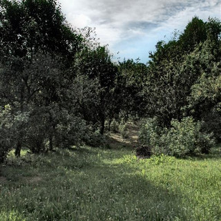 W domu sprawdziłam na mapie. To nie to miejsce... Ale już wiem gdzie dokładnie powinno być. Obieram krótszą trasę, wchodzę w drogę przed "Mleczarnią". Docieram do pól, Teraz po prawej mam i "Tajemniczy Ogród" i kukurydziane pole. Po lewej w zagajniku powinna być chata. Są chaszcze, są pokrzywy, są w wysokich trawach wydeptane ścieżki - nie ma chaty... Znowu wyszłam na wzniesienie, widzę kolejny sad i Rybną. Wracam w dół, wchodzę już w tę gęstwinę - może potknę się gdzieś o tajemniczą chatkę.