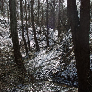Auto zostawiłam przy drodze w miejscu, gdzie "wyrobił" się parking i ... nie mogłam się zdecydować, w którą ścieżkę ruszyć. Jest ich tam kilka i każda wygląda obiecująco. Od czegoś trzeba było zacząć więc poszłam w prawo. Szybko poczułam się jak w innym świecie. Zapomniałam, że niedaleko jest droga. Otworzyły się przede mną pola, nieużytki, sady, ścieżki i widok na góry. Pomyślałam - dojdę do krawędzi tego zagajnika i wracam robiąc koło. I doszłam na skraj zagajnika i popatrzyłam w dół. I poczułam jak przekraczam to magiczne lustro na drugą stronę. Wąwóz, dość łagodne zejście - schodzę i otwierają się kolejne skalne ściany. Wąwóz jest ... duży, dość głęboki, ale szeroki, lekko zalesiony, w bok odchodzą ścieżki dające wrażenie kolejnych jarów. Płoszę sarny. Przechodzę malutki strumień i jestem w lesie, gdzie były sarny. Mój ogromny zapał lekko gasi widok zardzewiałych wnyk leżących na trawie w śniegu. Odtąd co chwilę staram się patrzeć pod nogi by samej nie wpaść w tarapaty. Wracam na drugą stronę i ruszam do góry by znaleźć się nad wąwozem. Wiem, że jestem blisko rybniańskich Morgów. Sady, sady i zagajniki. Teraz wiem, że od Rybnej dzieliło mnie 300 metrów. Widok w dół też ciekawy, gdzieniegdzie sieć borsuczych jam. Robię koło by wrócić do auta. Już jestem blisko drogi. Nie wierzę, że przed chwilą byłam w innym świecie. Zaczarowany świat zamknął się za mną. Drzewa, które widzę nie wróżą żadnej niespodzianki, strzegą tajemnicy.