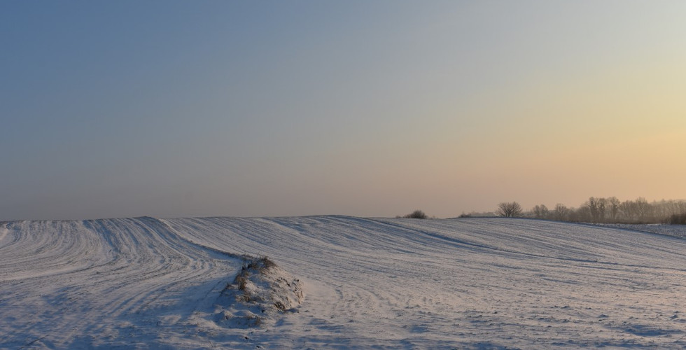 Między drzewami łukowaty murek, resztki jakiejś budowli z kamienia. I trochę dalej rzucone jeszcze dwie resztki kamiennego czegoś, schodki. Nie przychodzi mi nic do głowy co to mogło być, zastanawiam się tylko czy bez śniegu, w zieleni też wygląda tak zagadkowo czy może krzewy i liście wszystko przysłaniają. Wychodzę znad wąwozu, z lasu na wzgórze. Słońce już mocno świeci, ręka boli coraz bardziej, ale przynajmniej mogę założyć rękawiczkę. Co to było w lesie? Jaki dom tam stał, czy wtedy rosły tam drzewa...?
