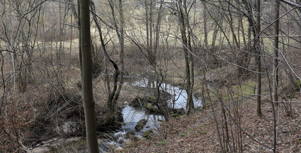 Spod Piekła przez pola idę na skraj wzniesienia. Później już będzie tylko w dół, a w dole teraz dobrze widoczne zakola Rudna. Schodzę (no powiedzmy ześlizguję się) małą bramą (wiem, że niektórzy mówią na nią Mała Brama Krakowska, i ja też). Skręcam mocno w lewo, żeby iść pod skałami. Mijam jaskinie - Małe Schronisko na Wrzosach, Północne i Południowe. Wychodzi słońce i teraz oświetlone skały wyglądają imponująco. Teren jest nieco oczyszczony i prześwietlony - tym lepiej widać więc jego niesamowite walory. Myślę sobie, że mieszkam w cudownym miejscu. Później rozpadliska w ziemi, trochę omszałych głazów i dochodzę do łąk. Przeskakuję potok i idę wzdłuż niego pod kolejnymi skałami - te są mniejsze, ale bardziej zwietrzałe. Dochodzę do wodospadu.