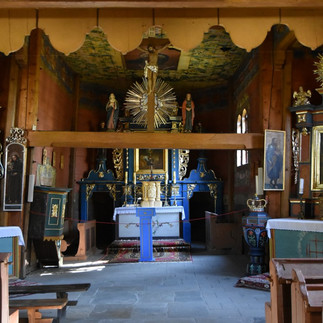 Chałupa pod nr 12 przybyła do Wygiełzowa z Przeciszowa i pochodzi z 1838 roku. To nie moje rejony, moje korzenie to wschodnia małopolska. Małopolska Zachodnia to też Rybna, Przeginia Duchowna a z tej pochodzi już piękna chałupa sołtysia z 1862 roku. Jej wnętrze jest oryginalne, całość dokumentuje najzamożniejszą warstwę chłopską. Wspaniale się prezentująca na kamiennej malowanej ultramaryną podbudówce przyciąga wzrok z daleka.