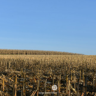 Idę dziś na Przyckę (Asia się zaklina, że ta część Rybnej tak się nazywa). Widzę tylko kukurydzę po horyzont - kukurydzę lub ścierniska po niej. Ta, która się ostała jeszcze stuka i szeleści przy każdym podmuchu wiatru. W bruzdach ziemi małe tafle lodu - to mi przypomina o nocnych przymrozkach. Wychodzę ścieżką lekko do góry, obok równolegle mały jar. I tak jak zawsze ten sam dylemat - wskoczyć w dół czy iść drogą tak nigdy nie wiem co ujrzę na końcu, choć miejsca znam dobrze. Widzę już horyzont, z lewej góry, na wprost Wrzosy i nadrudniański las. Dziś zaskakuje mnie widok kombajnu - hen hen w polach. Tak daleko i tak blisko jakby ktoś mi machał czapką. Jaskowiec przecina drogę, płynie nierówno, drzewa i zarośla wyznaczają jego bieg. Ostre przedzimowe słońce, niebo skrzące granatem, lekko marznące ręce. Jeszcze za wcześnie by sięgnąć po rękawiczki (przecież to nie zima). Żal tylko czasu, dzień skurczył się, ciemność zawładnęła większością doby. Kiedy już przyjdzie zima i zacznie się ta cała zabawa z śniegiem - wtedy zrobi się jasno od jego bieli. A potem już...