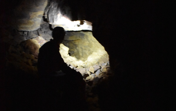 Docieramy do ogromnej komnaty z śladami palenia ogniska przez górników, wyrytymi znakami. Tu bloki skalne są ogromne i podświetlane latarką robią niezapomniane wrażenie.